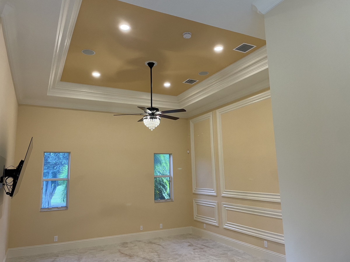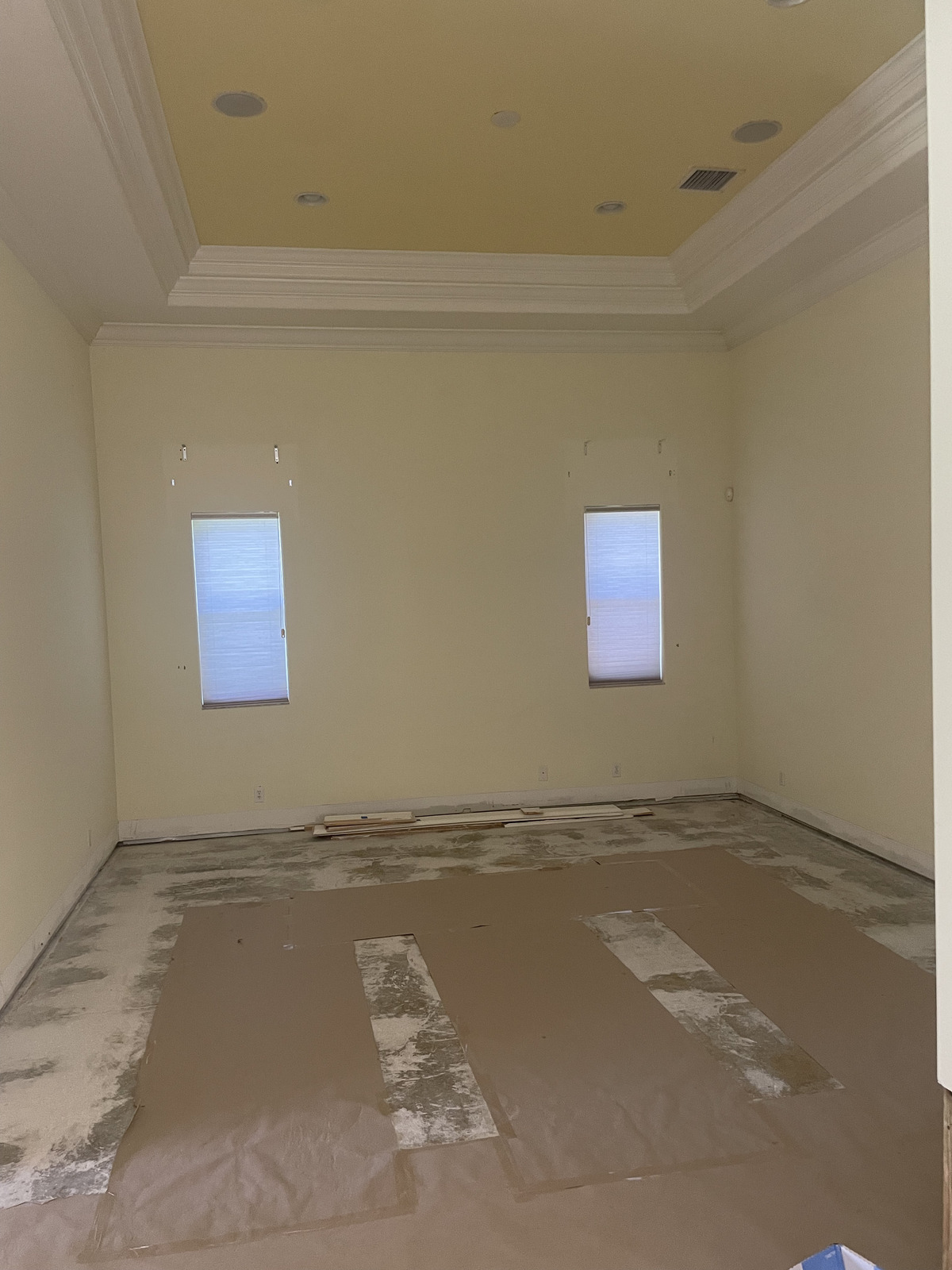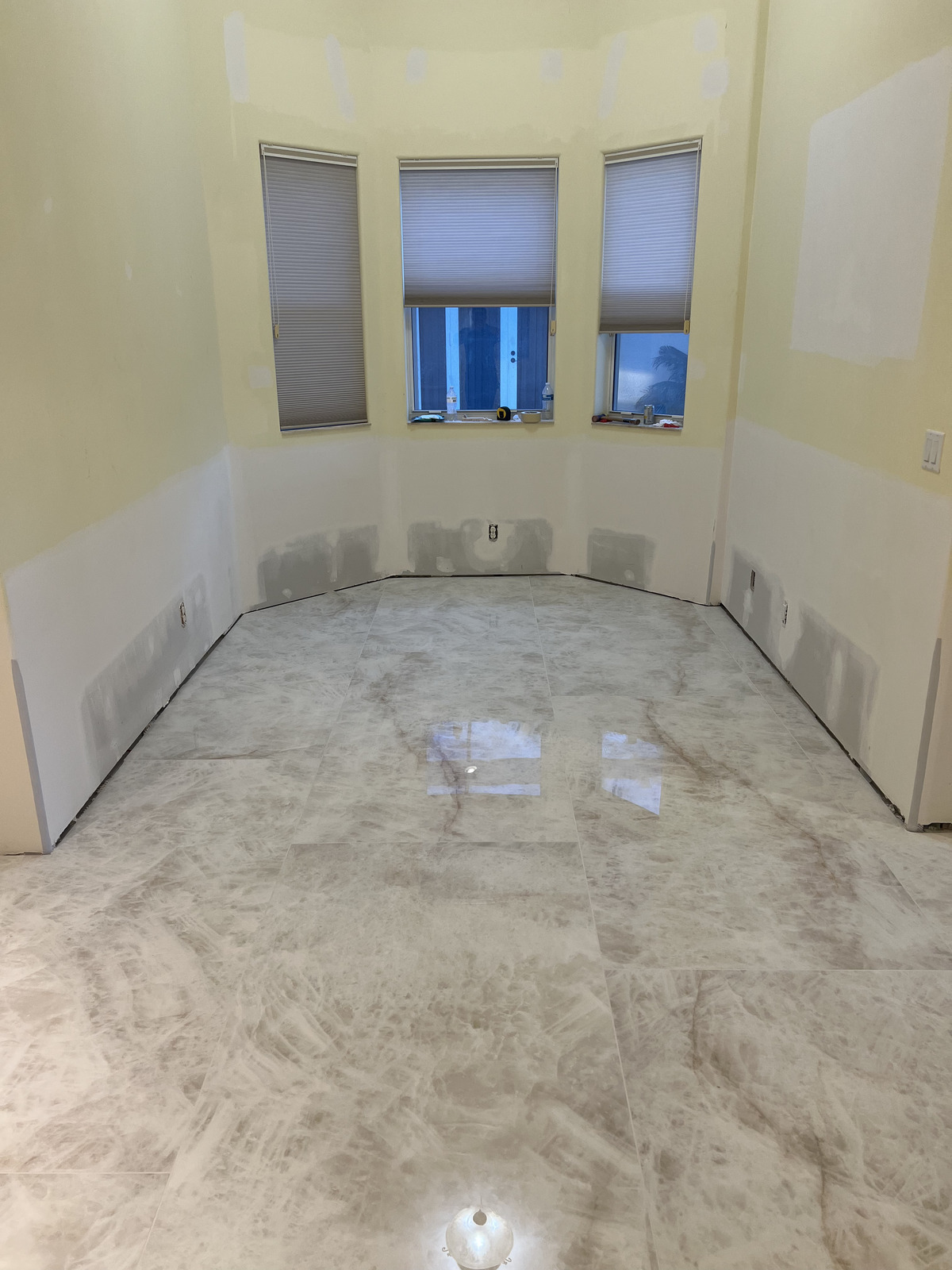 The project encompassed a complete renovation, highlighted by a luxurious spa-style bathroom, the installation of new glossy porcelain tile flooring throughout the home, and the application of exquisite trim and ceiling finishes. Our team of experts was dedicated to every detail, ensuring a flawless finish that elevates the aesthetic standard of any home.